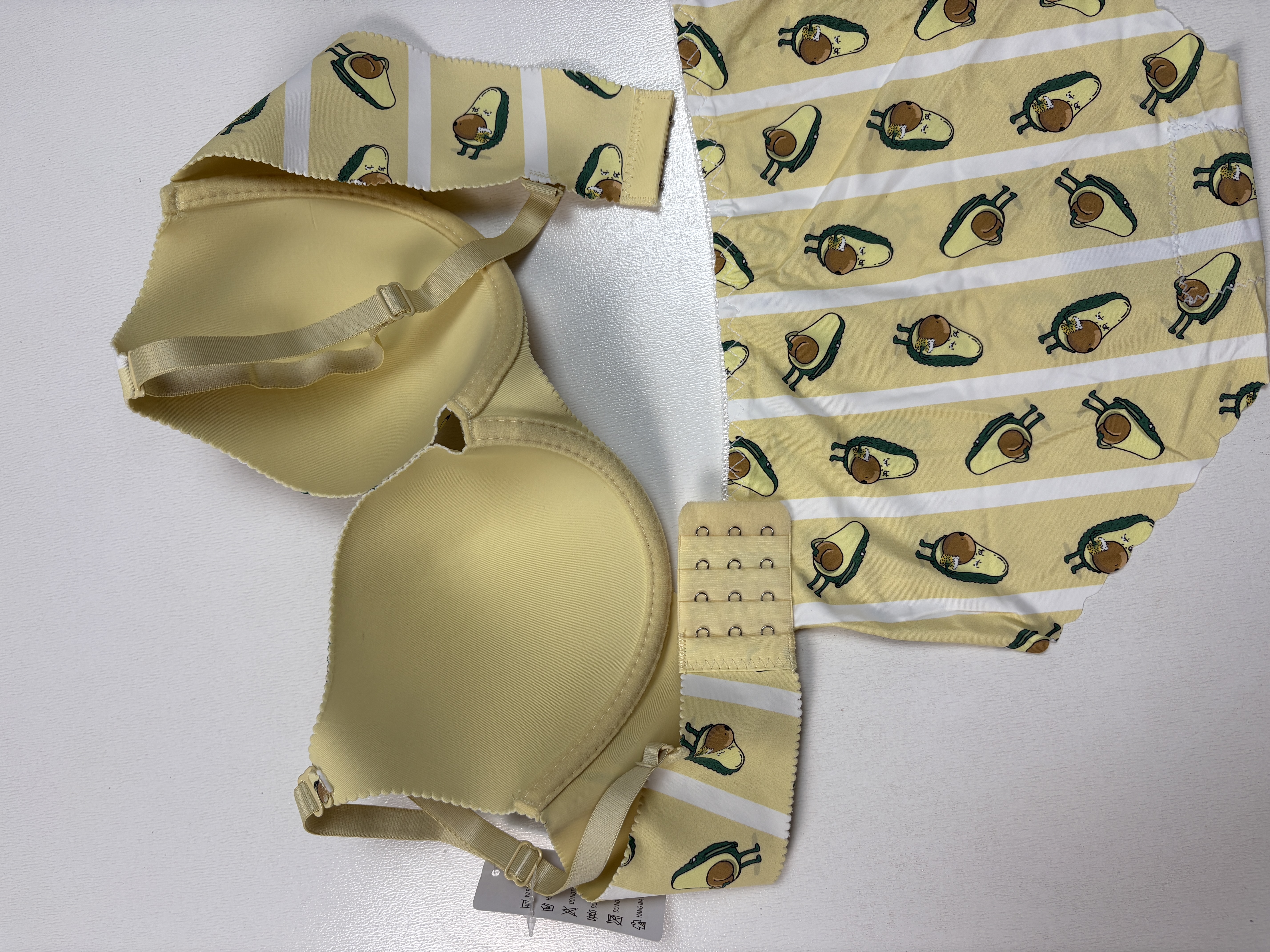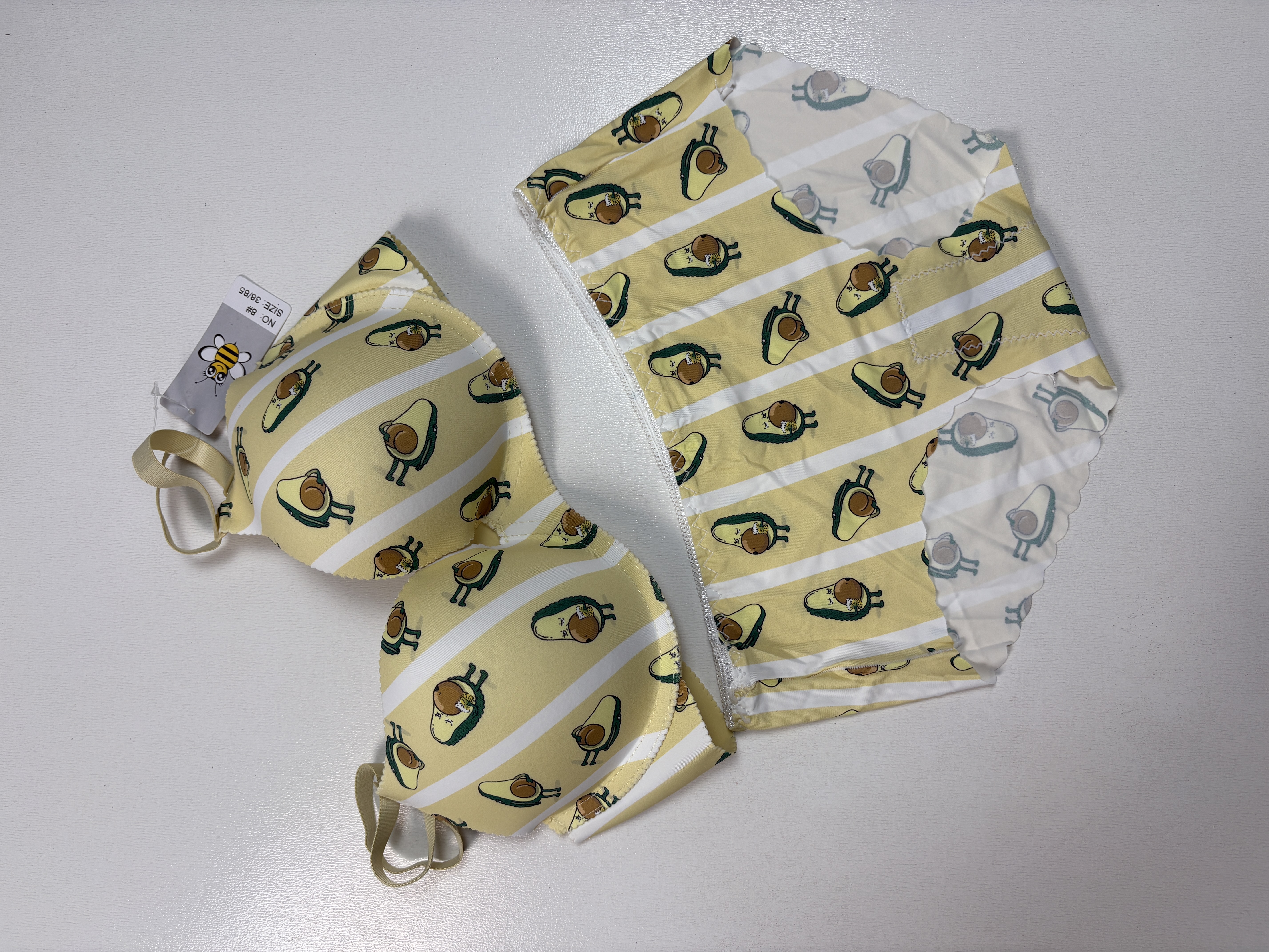 این ست خاص و خلاقانه، با الهام از شکل میوه آووکادو که نماد سلامتی، سبک زندگی مدرن و مد روز است، طراحی شده است. طرحی جذاب از آووکادو بر روی پارچه نقش بسته است. برش لیزری دقیق اشاره دارد که برای ایجاد خطوط تمیز، جزئیات ظریف و دوختهای پیچیدهی این طرح فانتزی به کار رفته است. این ترکیب، محصولی شاداب، مدرن و کاملاً منحصربهفرد خلق کرده است.