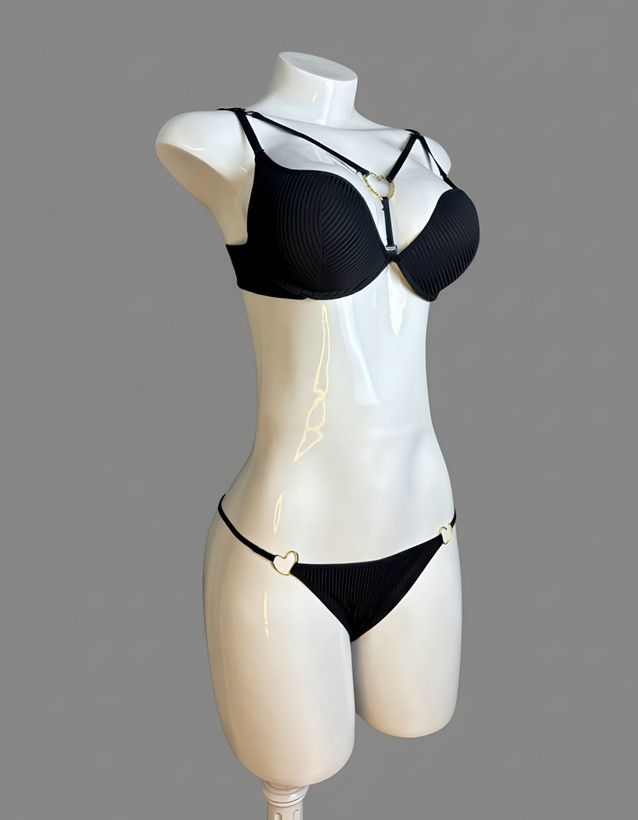 این ست رمانتیک و خاص، با یک آویز قلبی شکل طراحی شده که نماد عشق، علاقه و پیوند است. این المان قلبی از فلز ضدحساسیت ساخته شده تا هم دوام داشته باشد و هم برای پوستهای حساس مناسب باشد. طراحی هوشمندانهی این ست شامل قابلیت جدا شدن بندها است که امکان ایجاد مدلهای مختلف (مانند کراس بک یا هالتر) را فراهم میکند. سوتین دارای کاپ نازک سایز B و ویژگی فنردار است و شورت آن نیز ساده طراحی شده.