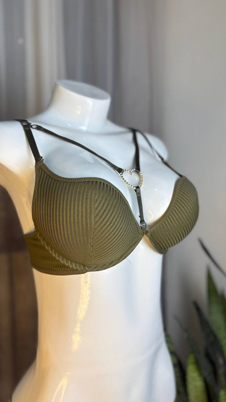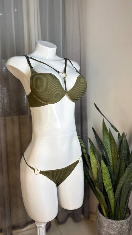این ست پراحساس، نسخهای سرزنده و پرامید از ست اویز قلب است که در رنگ سبز زنده ارائه میشود. آویز قلبی شکل از فلز ضدحساسیت ساخته شده و در کنار رنگ سبز، نماد عشق تازه، رشد، باروری، آرامش و امید به آینده است. طراحی هوشمندانهی قابلیت جدا شدن بندها همچنان امکان ایجاد مدلهای مختلف (کراس بک، هالتر و...) را فراهم میکند. سوتین دارای کاپ نازک سایز B و ویژگی فنردار است و شورت آن ساده طراحی شده تا تمرکز اصلی بر روی این نماد عشق سرزنده باشد.