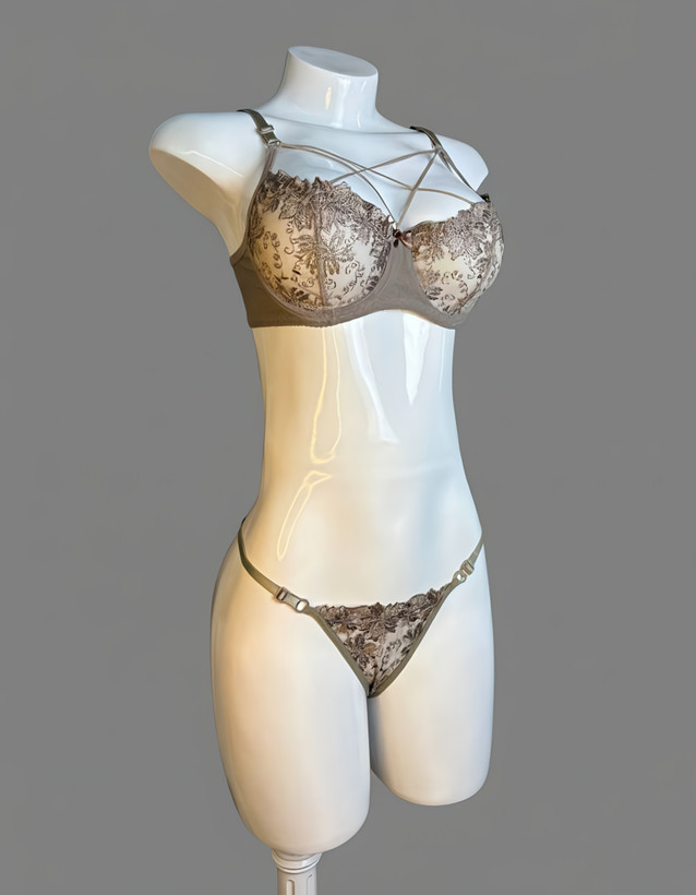 این ست با ترکیب ترند هارنس (بندبندی) و رنگ نسکافهای (قهوهای ملایم) طراحی شده است. رنگ نسکافهای که از خانواده رنگهای زمینی است، حس گرمی، طبیعی بودن، لوکس بودن و اعتماد به نفس را منتقل میکند. طراحی هارنس که معمولاً در ناحیه پشت یا جلوی سوتین اجرا میشود، ظاهری مدرن، ورزشی و در عین حال بسیار زنانه به ست میبخشد. المان فنردار به ظرافت آن اضافه کرده و شورت لامبادا با قابلیت تنظیم، راحتی و فیت ایدهآلی برای فرمهای مختلف بدن فراهم میکند.
