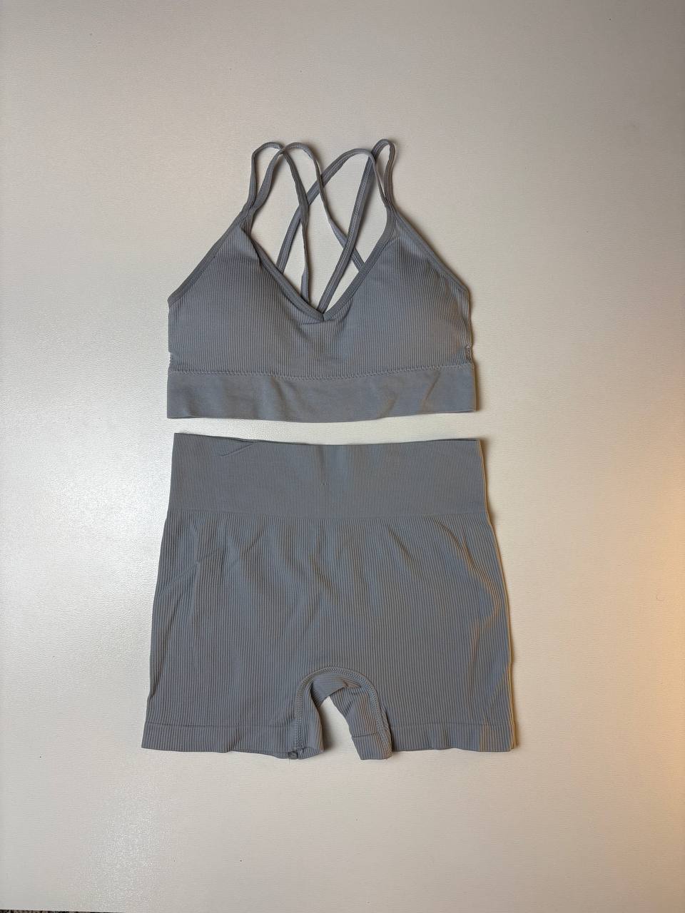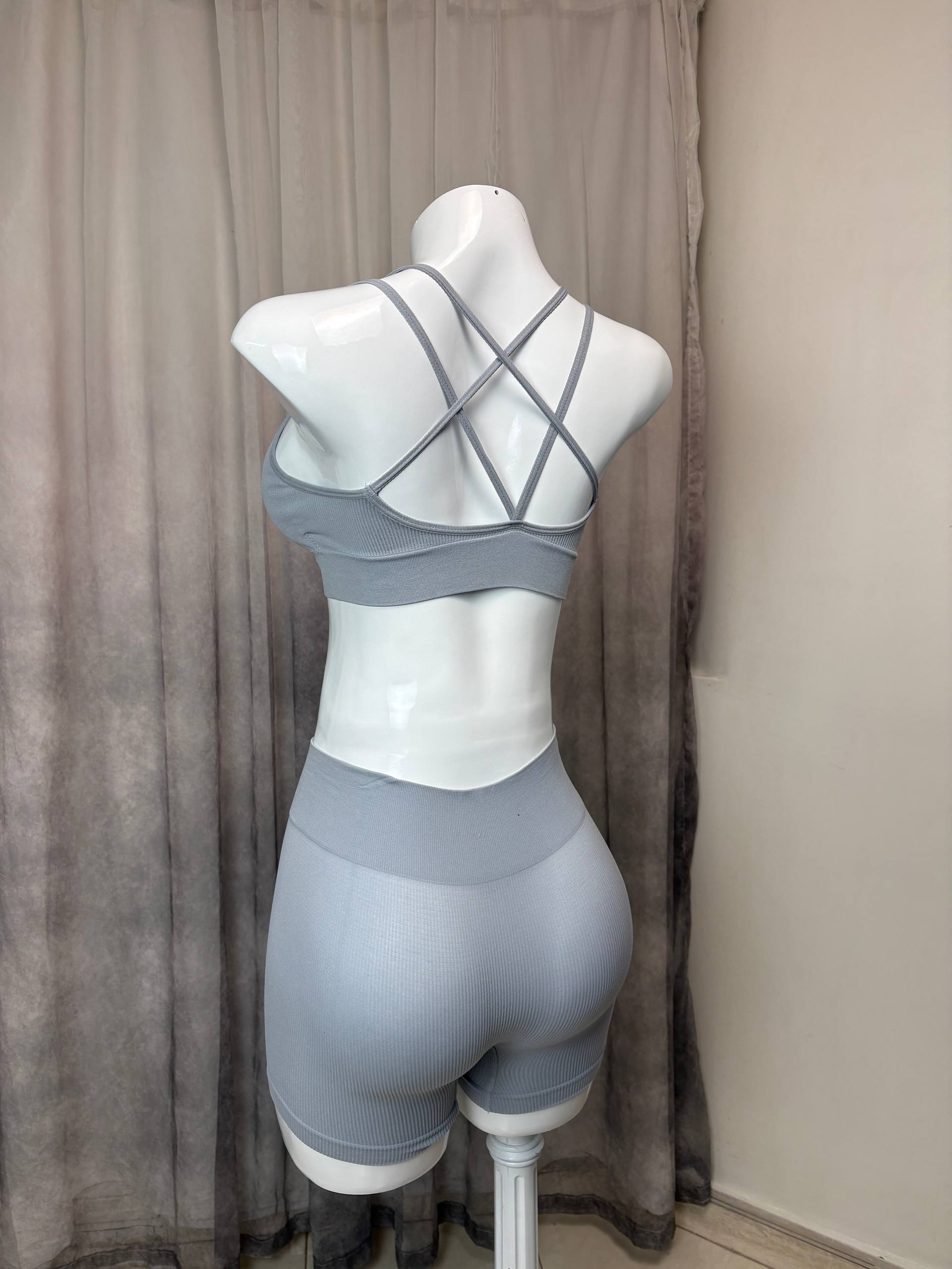 ست ورزشی زنانه نیمتنه پشت بندی و شلوارک
