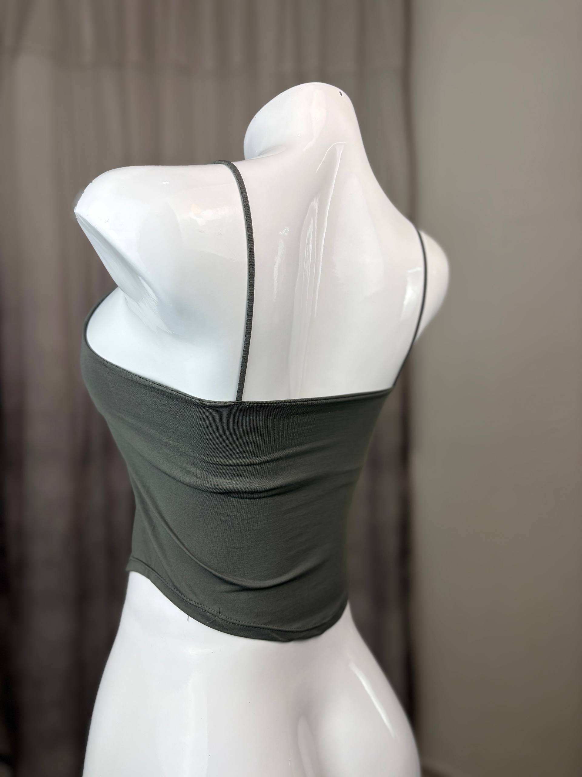 ✨ طراحی ترند و منحصربهفرد: ترکیب مدل محبوب کراپ تاپ با بندهای نازک ماکارونی، نمادی از شیکپوشی روز است.